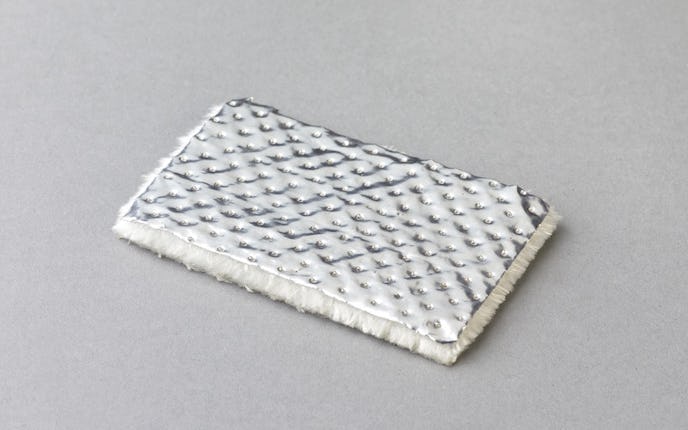 M 1761 ist eine Glasfasermatte, einseitig mit einer gelochten Aluminiumfolie (Dicke ca. 0,09 mm, Lochdurchmesser ca. 1,5 mm, Lochanteil ca. 7%) belegt. Selbstklebende Ausrüstung mit einem hochwertigen Klebstoffsystem auf Acrylatbasis.