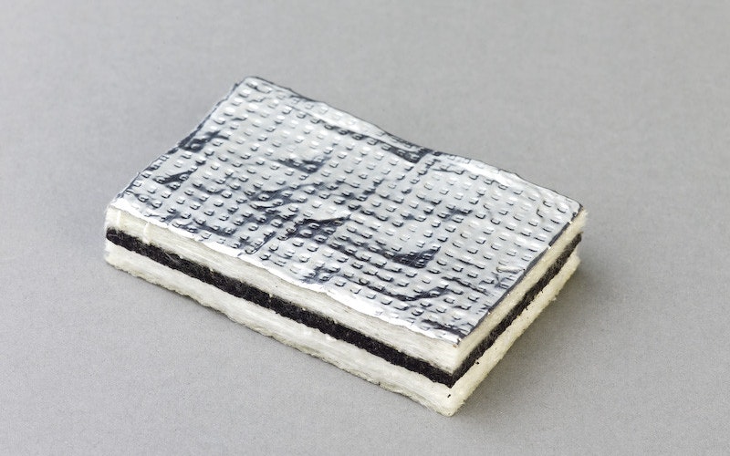 M 1754 is a glass fibre mat, one side lined with a perforated aluminium foil (thickness approx. 0.09 mm, hole diameter 1.5 mm, hole content approximately 7%), laminated on a heavy foil based on bitumen and a glass fibre mat. Self-adhesive equipment with a high-quality adhesive system based on acrylate.