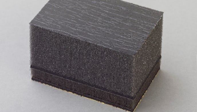 S 3806/...-2.1-10-2.1-... is a composite of two layers of polyurethane foam (polyether), laminated on bitumen heavy foil. Surface compaction with a stamped burl imprinting (-RG) or surface skin formation with a polyurethane foil (-VH). Self-adhesive equipment with a high-quality adhesive system based on acrylate.