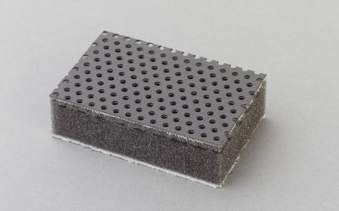 S 3233/…-L/...-GL is a polyurethane-foam (polyether), covered with a perforated composite (thickness approx. 5 mm) of a polyurethane-foam (polyester) and a PVC-artificial leather as a protective and decorative surface. Self-adhesive equipment with a high-quality adhesive system based on acrylate.