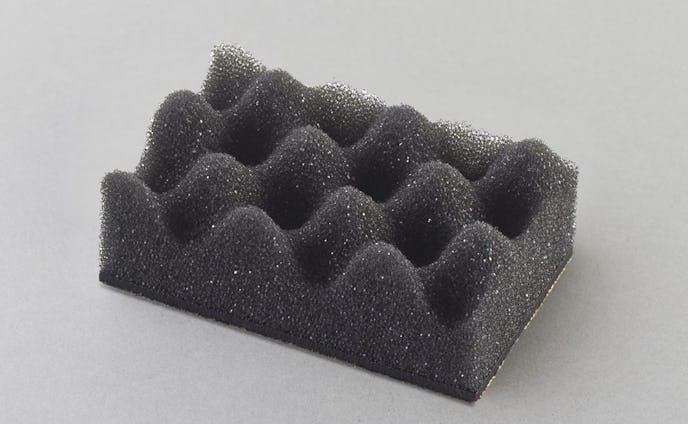 M 1281/30-2,1 ist ein weitgehend offenzelliger, profilierter Polyurethan-Schaumstoff (Polyether, ca. 30 mm dick), kaschiert auf einer Bitumenschwerfolie. Selbstklebende Ausrüstung mit einem hochwertigen Klebstoffsystem auf Acrylatbasis.